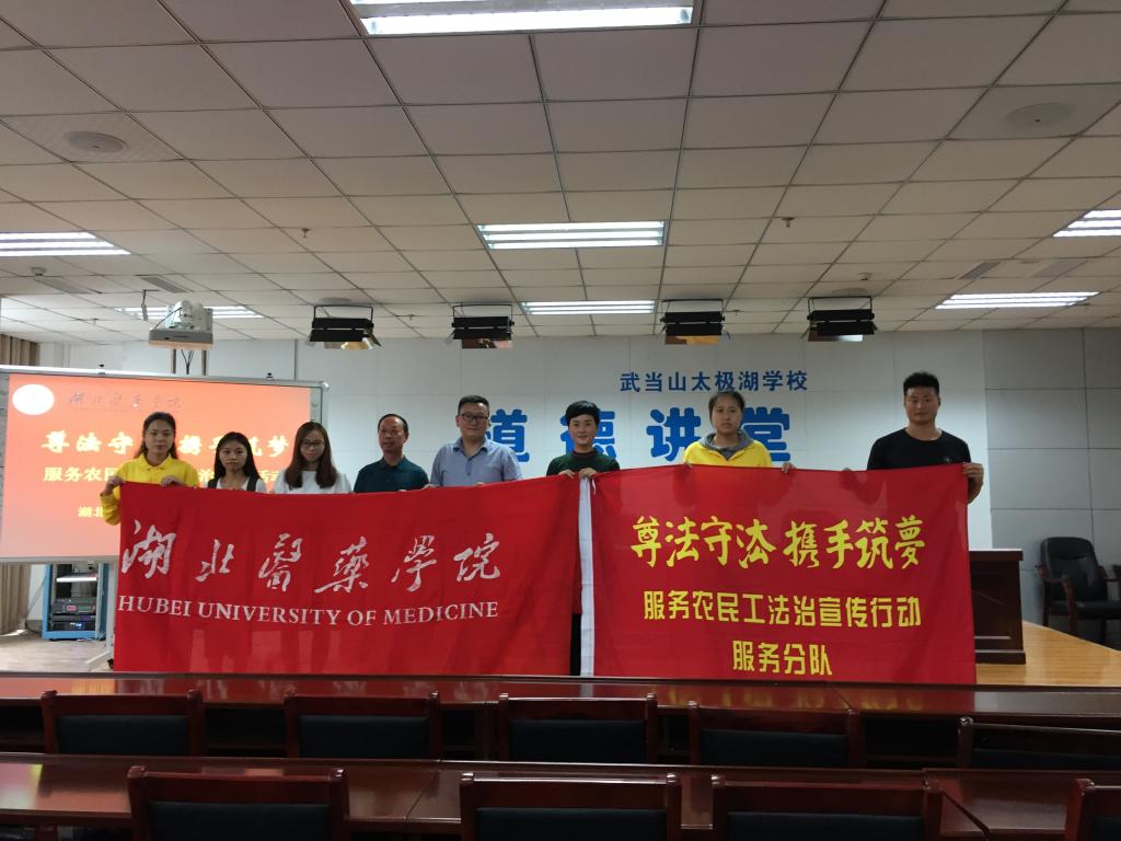 本网讯(通讯员唐念东)9月26日,我校工会常务副主席马兴国率领法学教研室师生等一行6人,赴武当山太极湖学校,开展“尊法守法·携手筑梦”服务农民工子女法治宣传活动。市总工会教育工会袁良泽主席,武当山教育局毛伍生局长及百余名师生到场参加。
